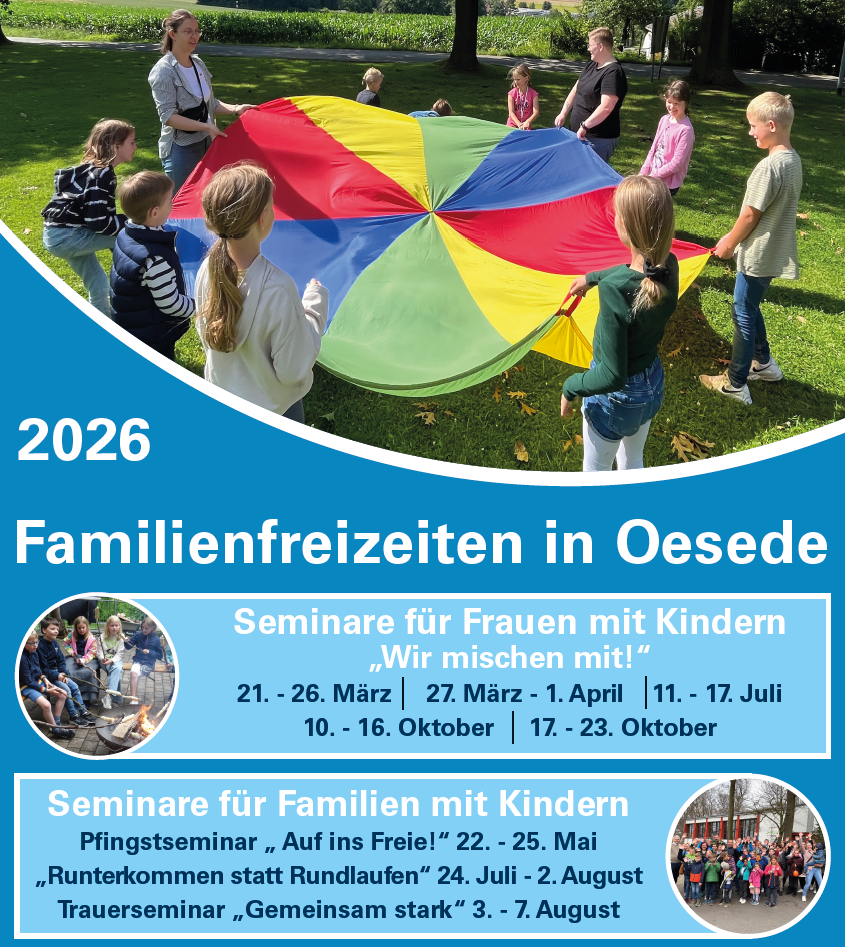 Katholischen LandvolkHochschule in Oesede ist dies möglich. Auf dem Programm stehen neben Spiel und Spaß viele gemeinsame Abenteuer und intensive Zeit als Familie.