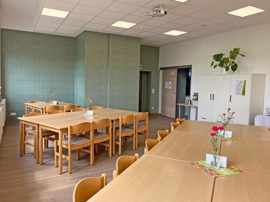 LandGutDer Speisesaal bietet den Gruppen genügend Platz, um zusammen die Mahlzeiten zu sich zu nehmen oder einfach Zeit miteinander zu verbringen.