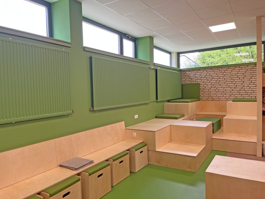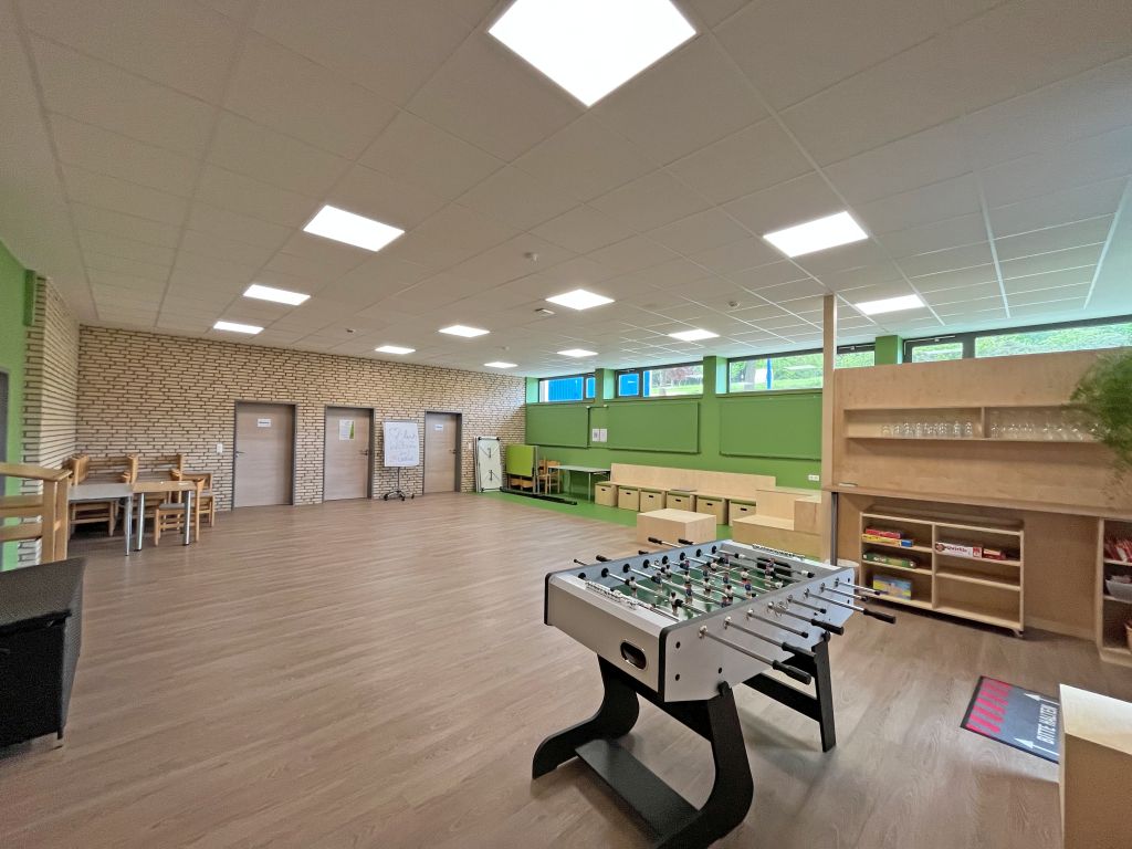 LandGutDer große Aufenthalts- und Plenumsraum mit einladender Podestlandschaft bietet viel Platz für pädagogisches Arbeiten, Spiele und gesellige Abende. Hier ist auch der Zugang zu den allgemeinen Waschräumen.